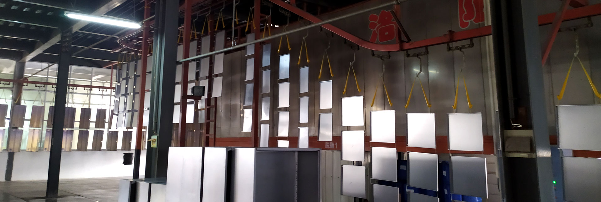 振越智造擁有先進(jìn)的瑞士金馬靜電噴涂生產(chǎn)線,整個噴涂線全長400多米, 12把德國進(jìn)口自動噴槍和2把手動噴槍